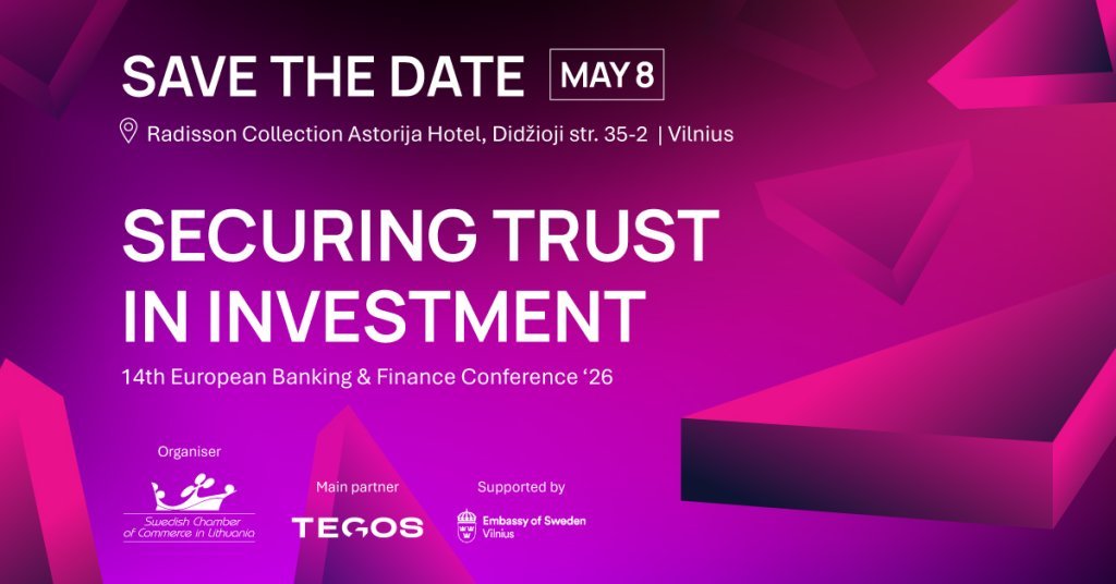 The 14th Annual Banking and Finance Conference, organized by the Swedish Chamber of Commerce in Lithuania in partnership with the Swedish Embassy in Lithuania and TEGOS, will explore one critical question: Do bankers and international investors trust Lithuania’s market?