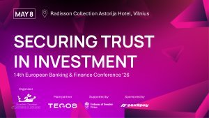 Join us for the 14th Annual Banking & Finance Conference: Securing Trust in Investment, taking place on May 8, 2026, at the Radisson Collection Astorija Hotel, Vilnius.