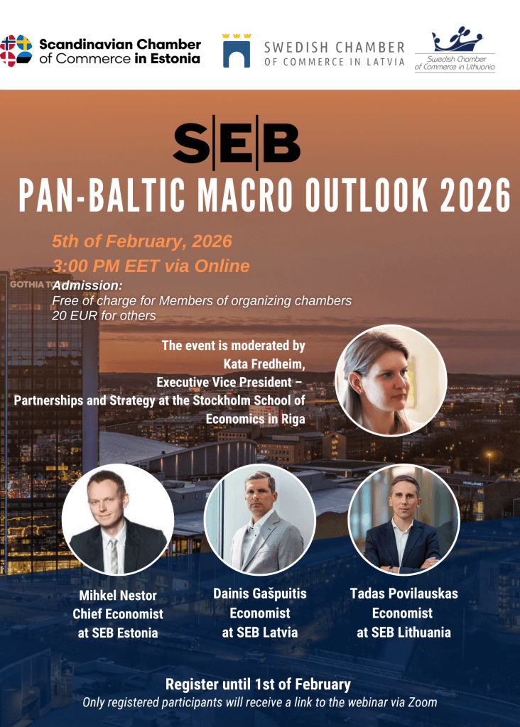 Join the Swedish Chambers of Commerce in Lithuania and Latvia, and Scandinavian Chamber of Commerce in Estonia for the Pan-Baltic Macro Outlook 2026 on February 5th.